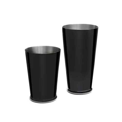 SET OF KORIKO® WEIGHTED SHAKING TINS GUNMETAL BLACK | • Includes: 1 Small Weighted Shaking Tin (18oz / 532ml) & 1 Large Weighted Shaking Tin (28oz / 830ml) [also sold individually] • This set of shaking tins has a 2 drink capacity. • Our original house brand, Koriko® is synonymous with Cocktail Kingdom quality. • The weighted base increases tin stability for easier pouring with no spills. • Our industry-leading quality control gives you a perfect balance between flexibility and rigidity that ensures a tight seal with easy separation. • Stainless steel with gunmetal black plating. Plated barware is not dishwasher safe. |