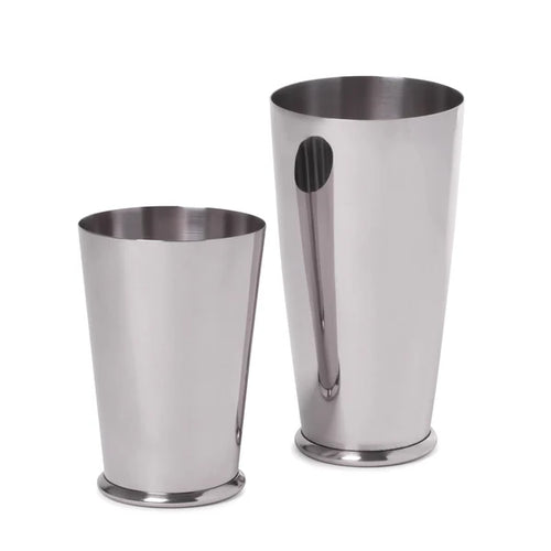 SET OF LEOPOLD® WEIGHTED SHAKING TINS STAINLESS STEEL | • Includes: 1 Small Weighted Shaking Tin (18oz / 532ml) & 1 Large Weighted Shaking Tin (28oz / 830ml) [also sold individually] • This set of shaking tins has a 2 drink capacity. • Our original Leopold® line carries an ornate art deco style, inspired by pieces in our antique barware collection dating to the 1920s-30s. • The weighted base increases tin stability for easier pouring with no spills. • Our industry-leading quality control gives you a perfect balance between flexibility and rigidity that ensures a tight seal with easy separation. • Stainless steel construction |